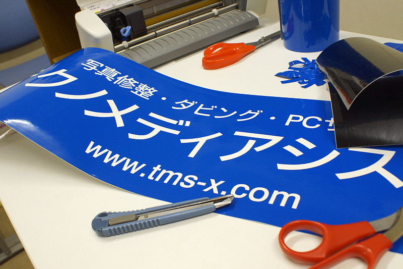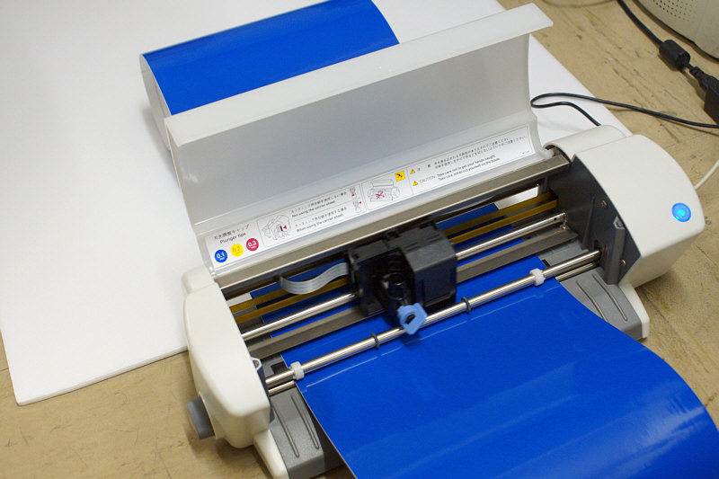 事務所の外に貼っているミニ看板が汚れてきたので、そろそろリニューアルかなと思い、文字を切り出すために、3年ぶりにクラフトロボを出してみました。あまりの久々に、ドライバはインストールされてないわ、ドライバーCDはないわ、使い方覚えてないわで四苦八苦。1時間ほど苦戦して、やっと稼動しました。
