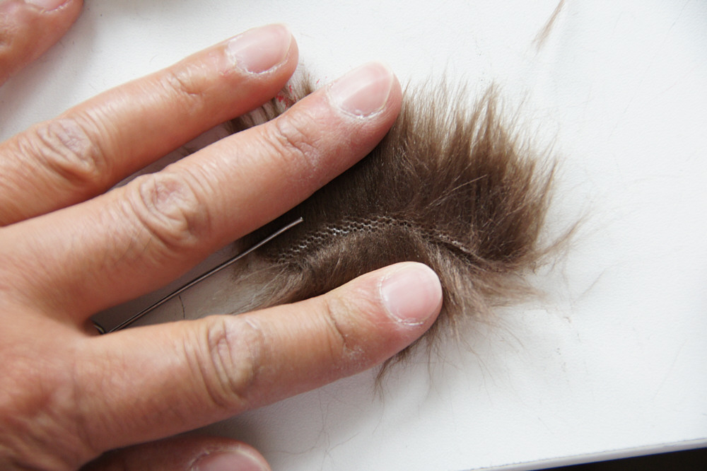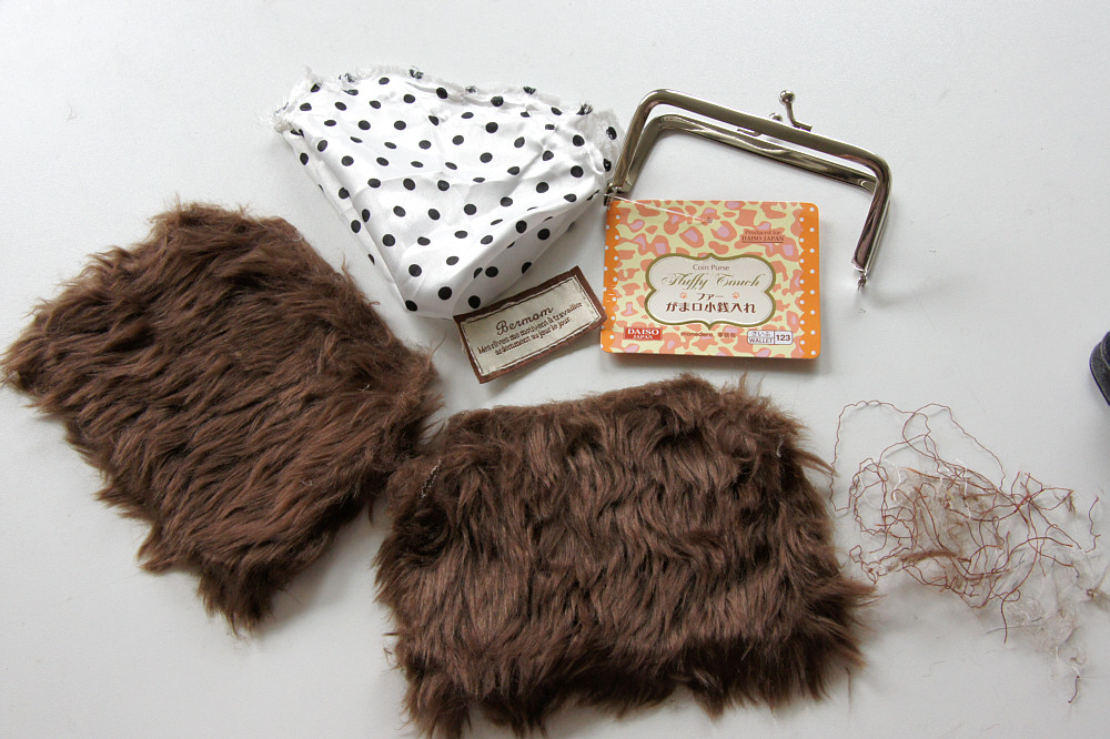 フェイクファーに型を転写したら早速カット。髪の毛を分けるように、フェイクファーもきれいに分けてから切った方が良さそうです。