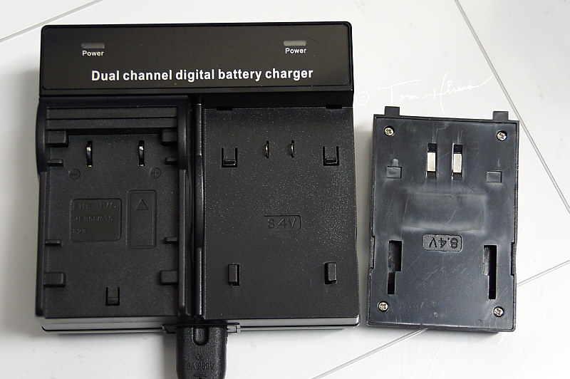 1個用充電器は比較的どこでも買えますが、今回入手したビデオカメラは結構電気を食いますので、念のため2個用に。充電器で2個、本体で1個、計3個同時に充電できれば個人的には十分。充電器のプレートも取り外し可能なので、バッテリープレートを取り換えれば他機種用としても利用可能。充電時8.4Vの物だったら大抵行けるかと思います。