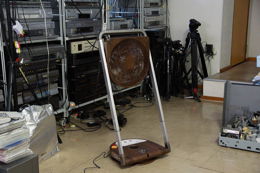 ドウシシャ FLR-251Dという機種。25cmファンで小型だが、風量は十分。あまり見ないデザインに惚れてゲット。何よりうれしいのが、使わないときは折りたたんで隙間に収納できるところ。