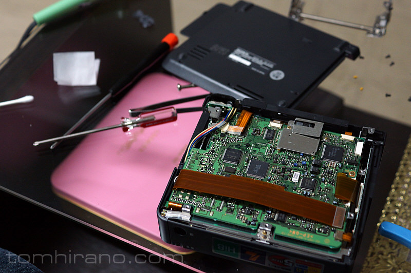 そんな事より、とりあえず分解。ドアが閉まらないという事は、カセコンの枠が歪んでる可能性大。カセコンが外せるところまでドンドンばらしていきます。