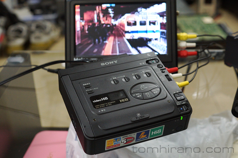 スイッチオン。電源ランプは付いて、イジェクトも正常そう。早速8ミリビデオテープを再生してみます。