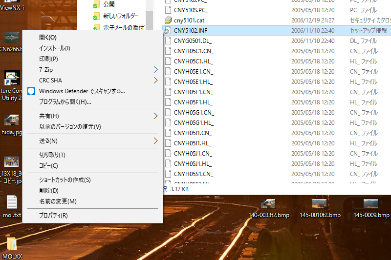 infファイルの先頭の番号はバージョン等で違うかもしれないが、このセットアップ情報ファイルinf を右クリック。