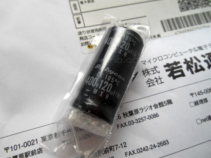 秋葉原行くのも面倒だったので通販。400v 120μFを若松通商さんから。