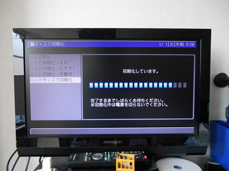 立ち上がりました。HDDを初期化してくれというメッセージが出たので指示通り初期化。
