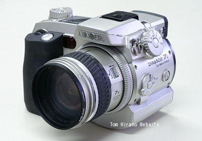| 2002 | ![]() | ミノルタ Dimage 7i (500万画素) ミノルタらしい発色で大変満足しているカメラ。液晶ファインダはピントの山がつかみ難いが、その不便さを上 回るほどメリットがあった。フォーカスエリア(ポイント?)が自由に変えられる点も素晴らしい。CCD情報からピンを掴むため、AFが遅く、鉄道写真は置 きピン前提。一番残念だったのは、マクロがズーム全域で使えない、あまり絞れないため被写界深度が浅かったの2点。ズームも28-200ではなく 300mmまで頑張って欲しかった。 |